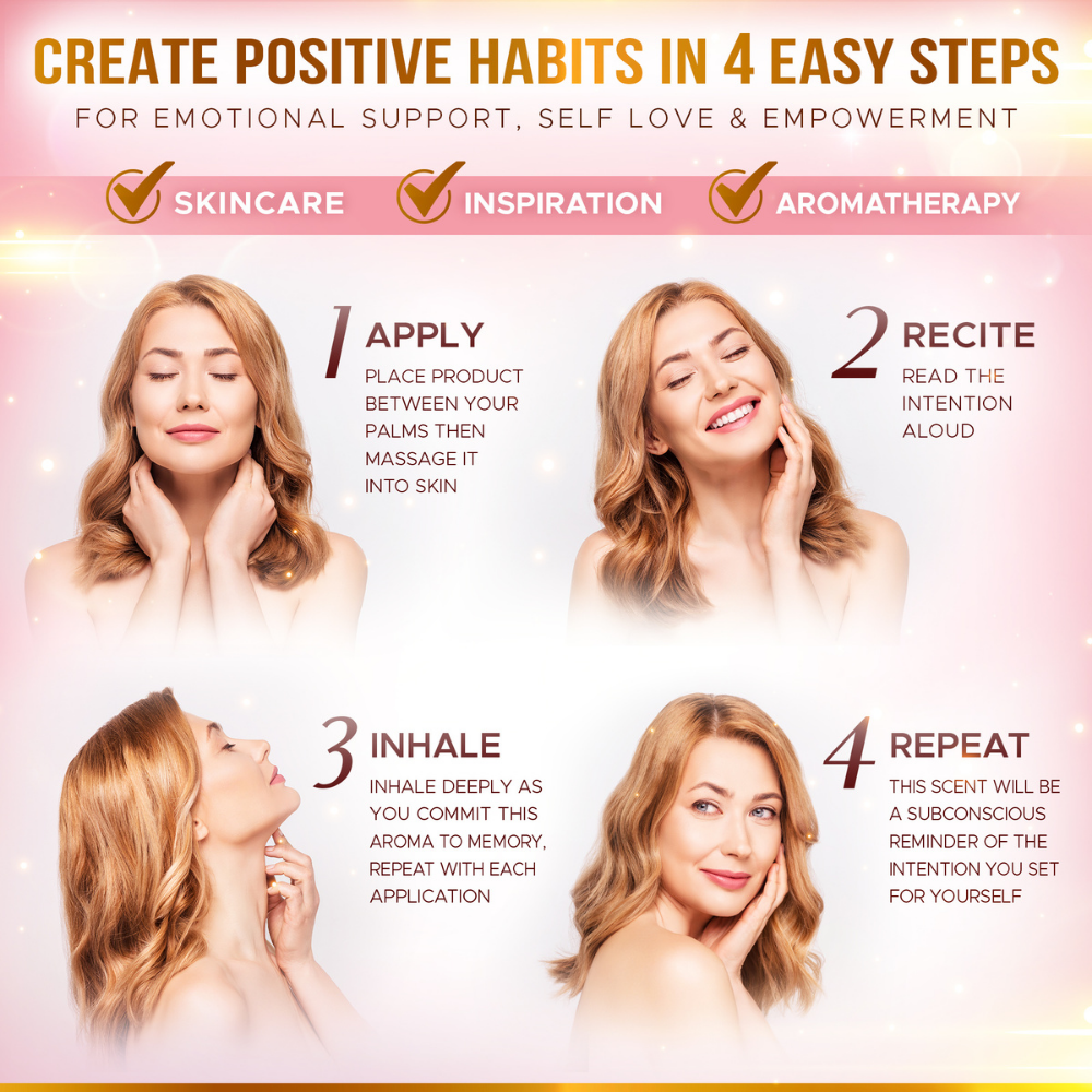 1. Place product between your palms then massage it into skin while reciting the intention.
